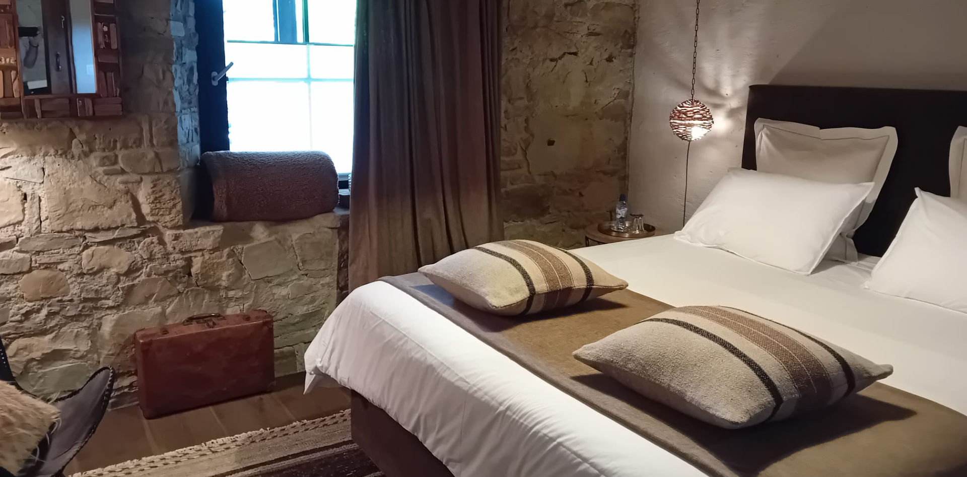 Bois, pierre, chaux et poutrelles apparentes rendent ce lieu unique et charmant.